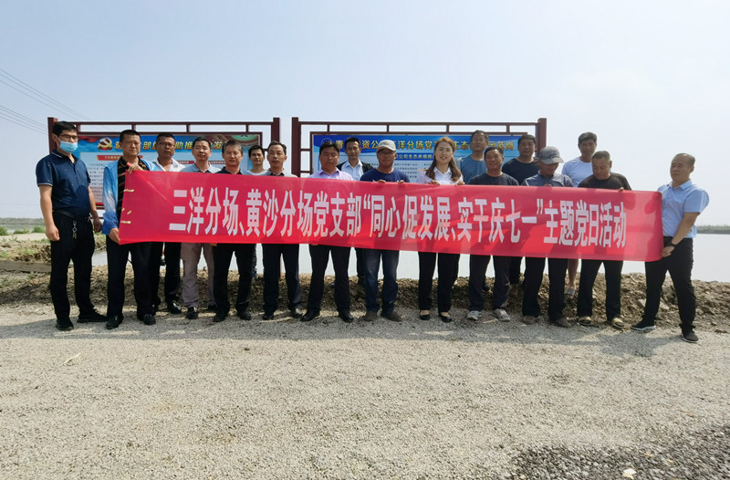 在“同心促发展 实干庆七一”主题党日活动现场中,三洋分场、黄沙分场党支部邀请长期在全国从事渔业科技服务的珠江水产研究所彭勇鳌工程师,深入到池塘的养殖一线,查看、询问养殖户们在养殖过程中遇到的难题,并有针对性地做出养殖新技术帮扶和推广志愿服务活动,为养殖户们排忧解难,不断提高养殖效益。
