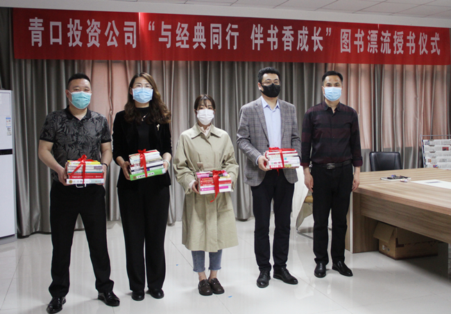 4月26日下午,青口投资公司工会在公司职工书屋举办了“与经典同行,伴书香成长”图书漂流活动启动仪式,公司党委副书记、工会主席梁永,纪委书记朱文兵应邀出席并为8个分会授书。