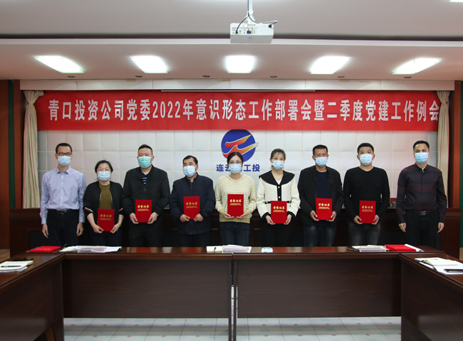 4月24日下午,青口投资公司党委组织召开2022年意识形态工作部署会暨二季度党建工作例会。公司党委书记史祥平,党委副书记、工会主席梁永,纪委书记朱文兵,各单位支部书记、分会主席以及党群各部门全体人员参加会议。