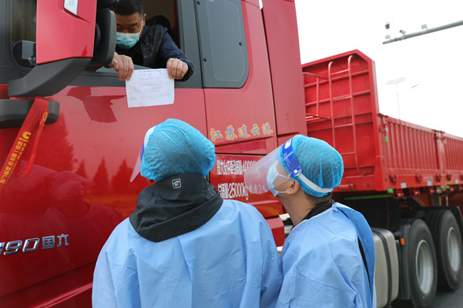 一名党员就是一面旗帜。在长时间的工作中,党员志愿者的嗓音变得嘶哑,他们仍然仔细查验每一位司机的信息,切实做到逢车必查、逢人必测、不漏一车,严防死守,牢牢把控疫情传播的第一道关口,织密织牢疫情防控网。(黄阿凤)