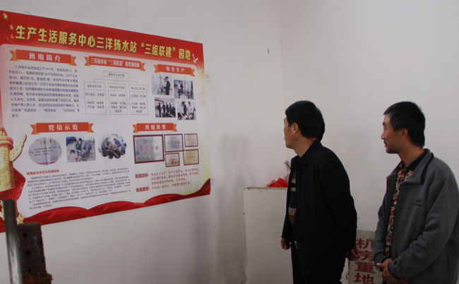 在生产生活服务中心扬水站班组,与会人员实地观摩了“三组联建”阵地建设,详细听取了党小组组长关于“三组”在联建、联动、联学等方面的开展情况和取得的成效。