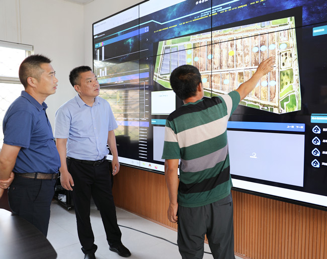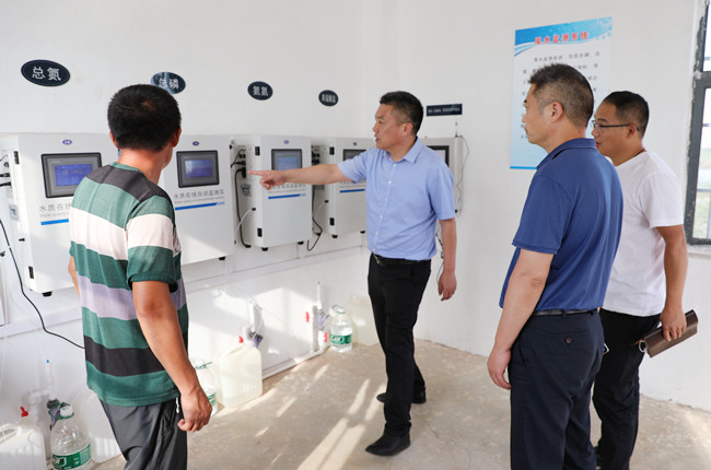 在黄海养殖场,史董认真听取养殖场负责同志对尾水处理工艺的介绍,详细了解黄海养殖场物联网平台、污水处理流程、水质信息采集与监测系统等,并实地考察了尾水处理监测室、污水循环处理设施、人工湿地生态系统等,就污水处理工程设计施工、污水监测指标、养殖生产用水等问题与养殖场负责同志进行了深入的探讨与交流。