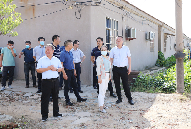 与会人员来到文卫路,听取了相关负责人关于黄沙坨居民区新建绿化及排水管道改造项目汇报,沿路查看了主道、支道以及排水等生活设施情况。