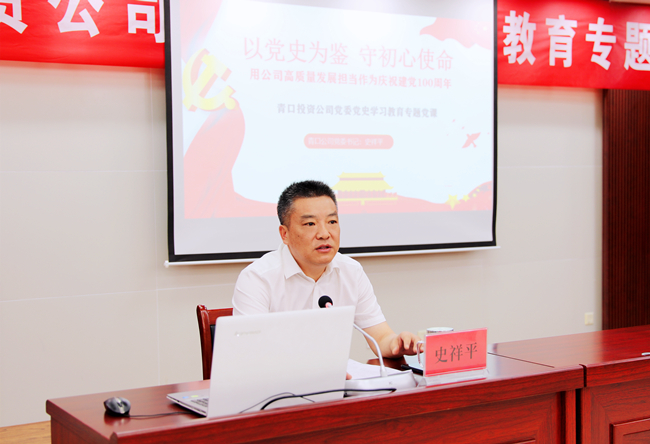 党的百年华诞来临之际,6月30日上午,青口公司党委书记史祥平以《以党史为鉴 守初心使命 用公司高质量发展担当作为庆祝建党100周年》为题,为公司党员干部上了一堂生动的党史学习教育专题党课。B体育(中国)公司党委党史学习教育第一指导组组长、B体育(中国)纪委副书记王建松应邀参加会议。