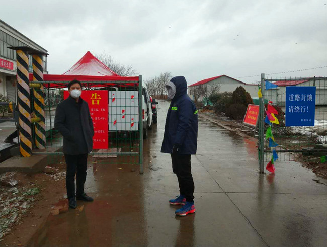 公司党委书记、董事长胡传法冒雪检查成业饲料卡口,胡书记嘱咐在现场值班的团青干部防控一线,要动真格不能含糊,坚决不给外来车辆通过。负责这里还有生产生活服务中心和黄沙分场的全体管理干部,大家都很辛苦,但没有埋怨,都在默默地坚守岗位,履行职责。“你不站岗我不站岗,谁保卫咱大场”他们是这样说也是这样做的。为了让值守人员有一个温暖的临时休憩的场所,泰祥公司将一个临时集装箱拉到卡口,后勤班的小伙子们,搬运调试固定,丝毫没有因为寒冷的天气影响工作进度。