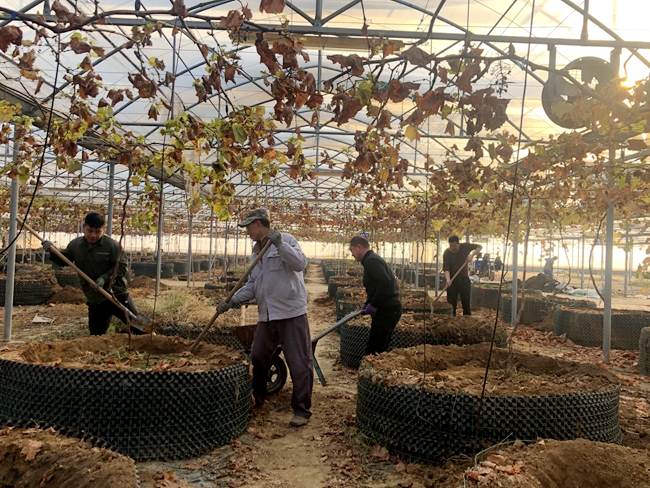 近日,生态种养中心对进入冬季休眠状态的大棚葡萄进行实施基肥,增强果树的长势,促使冬季后葡萄芽的生长和发芽的分化,又可以有效的减少年后公枝的数量,确保来年挂果早且品质好。(严鑫)