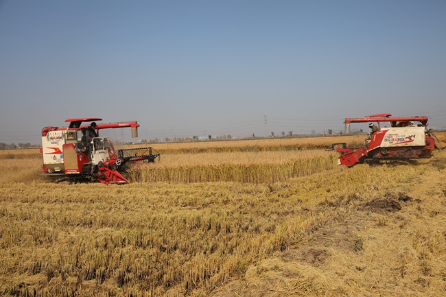 当前正值秋收大忙的关键时期,大新农场到处可见机械来回穿梭地收割、运粮、堆粮场景,空气中弥漫着淡淡的稻香,一派繁忙的丰收景象。为确保秋粮颗粒归仓,公司秋收工作组在田间和晒场间奔忙着,计量称秤、农机管理、巡查值守、后勤保障,统筹安排抢抓晴好天气抓紧水稻收割,全力打好秋收攻坚战。农场从11月4日开始进入收割期,十几台收割机、拖拉机等农机全部投入生产,收割机每台每天基本可以收割30亩左右,农场自营的5500余亩水稻预计于本周内全部收完。今年天气多变性小,适合水稻生长,预计今年水稻的产量将高出去年。(大新农场)