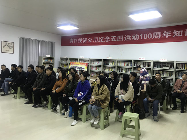 4月28日上午,青口投资公司团委开展纪念五四运动100周年活动,邀请组织宣传部部长作“青春心向党,建功新时代”专题知识讲座。公司副总经理周绪祥应邀出席活动并讲话, 37名团员青年参加了本次活动,作为新时代的青年,要担负起弘扬五四精神的责任,努力工作,为公司三年攀高贡献力量。 (王 伟)