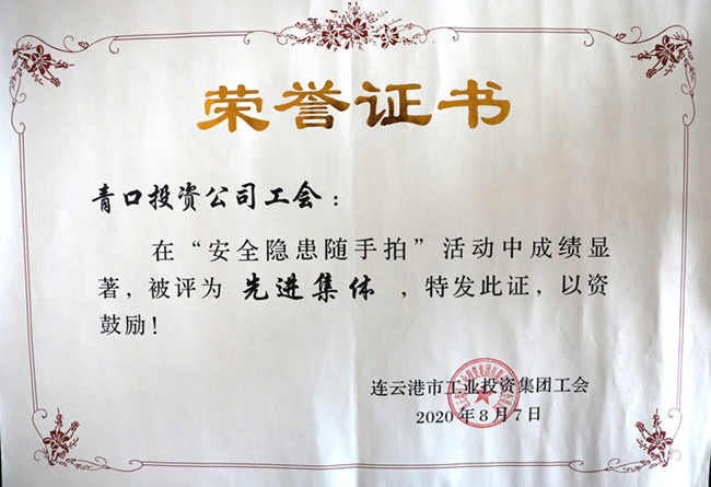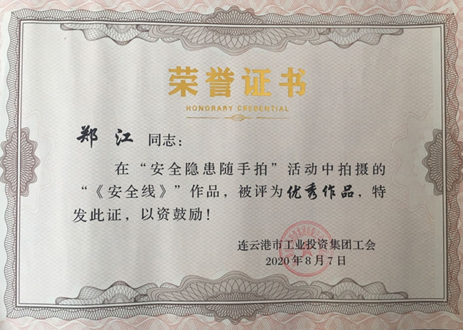 B体育(中国)公司工会5月以来开展了“安全隐患随手拍,合保安康你我他”为主题的“安全隐患随手拍”活动,青口工会广泛宣传,组织广大职工积极参与,期间共收到职工“随手拍”作品近二十件,并上报B体育(中国)公司参加比赛,经上级专家评审,我公司工会被评为“先进集体”,郑江作品《安全线》获得优秀作品奖。