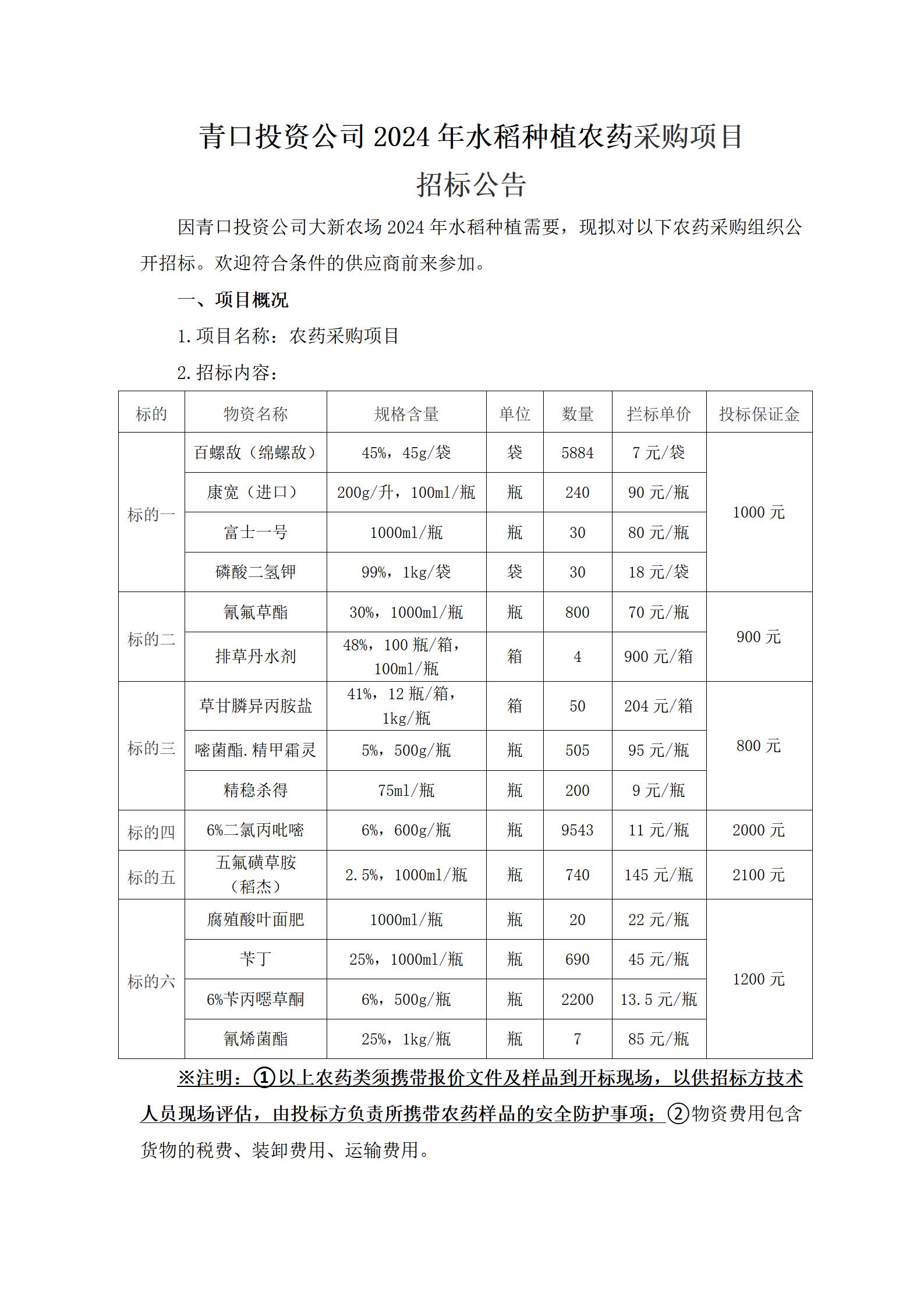 中标者信息于连云港市工投B体育(中国)青口投资有限公司网站公示3日,公示期满签订相应的物资采购合同《农药采购协议》。拒绝签订协议的,视为自动放弃,做废标处理。