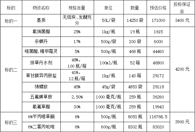 因青口投资公司2023年水稻种植需要,现拟对以下农资采购组织公开招标。现欢迎符合条件的供应商前来参加。