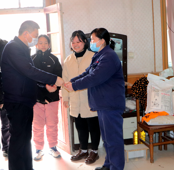 匡总与困难职工亲切交谈,详细询问其生活情况,鼓励她保持乐观心态,并送上慰问品和慰问金,致以节日的祝福和问候,切实把组织的温暖和爱心送到困难职工的心坎上。(神特宣)