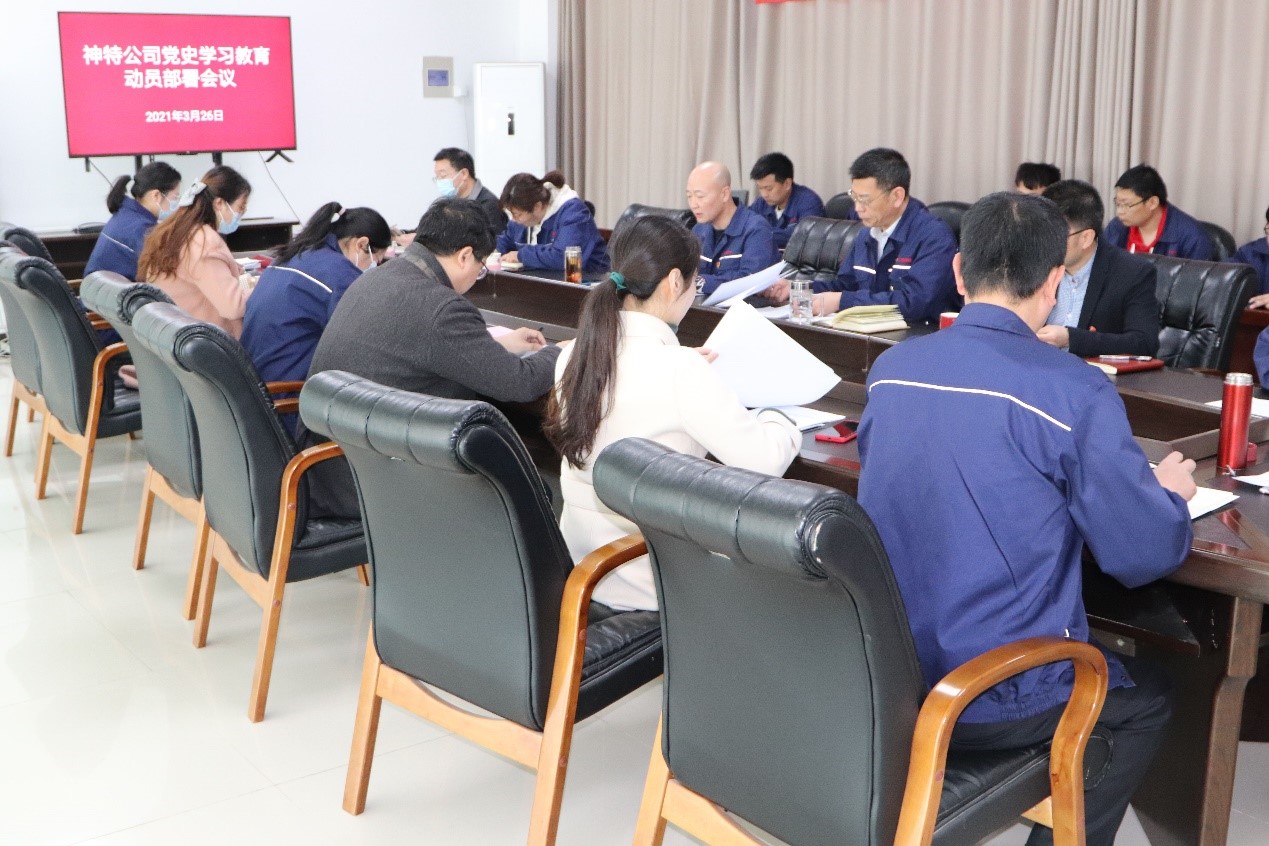 会上,公司党支部书记、总经理韩立新就开展好党史学习教育,提出三点意见:一要提高站位,深刻认识党史学习教育的重要意义;二要抓住核心,准确把握党史学习教育的目标任务;三要精心部署,切实加强党史学习教育的责任落实。参会人员纷纷表示,将把党史当作最好的“教科书”,带着尊崇、带着敬畏,走进历史天空,带着初心、带着使命,铸牢信仰信念,从党的百年伟大征程中汲取前进的智慧、奋进的力量,学党史、悟思想、办实事、开新局。(神特宣)