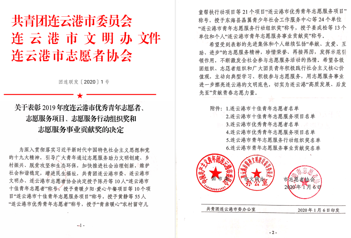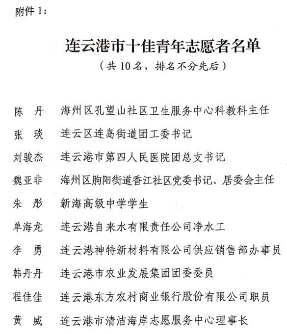 近日,公司员工李勇被共青团连云港市委、连云港市文明办、连云港市志愿者协会授予“连云港市十佳青年志愿者”称号。这是对其“无偿献血,大爱无疆”的肯定,也是对其一种激励。