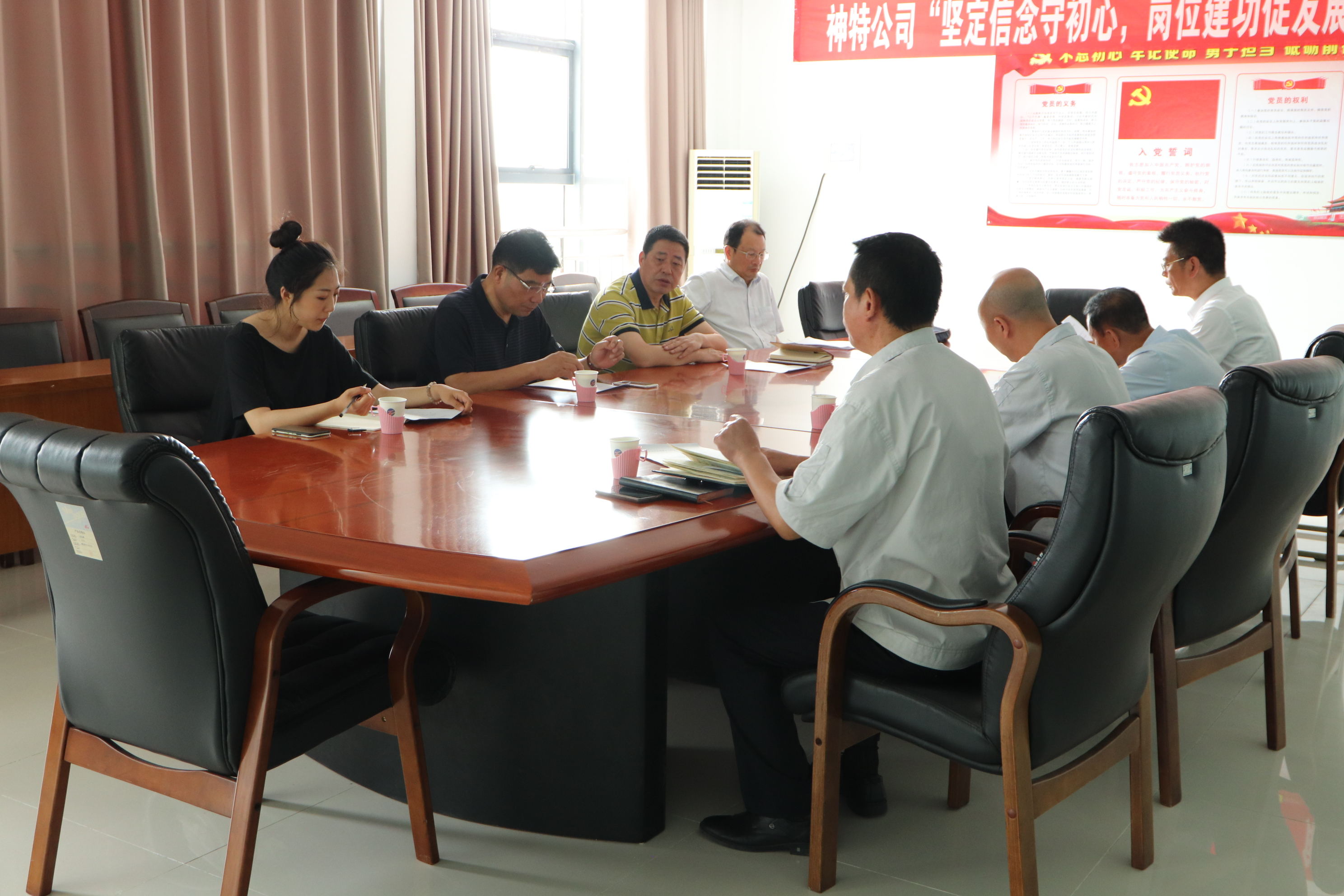 调研会上,副书记袁忠围绕党组织的领导作用、人财物保障、“书记项目”、阵地建设、离退休党员教育管理专项整治、“七一”活动、“学习强国”、先进典型培育选树、党建特色工作等方面,就上半年党建工作开展情况进行了汇报。党支部书记邹德兵、总经理韩立新就党建工作与调研组成员交换了意见。江舜军部长对于我公司上半年党建工作给与肯定,体现四个特点,即“四个强化”有内容、“三组联建”有新意、“三亮三挂”有特点、阵地建设有思路,针对下步工作,要求在凝心聚力、载体创新、典型选树、文明创建上下功夫,持续深化党建工作,不断彰显党建实效,引领和推动企业经济工作向稳向好开展。