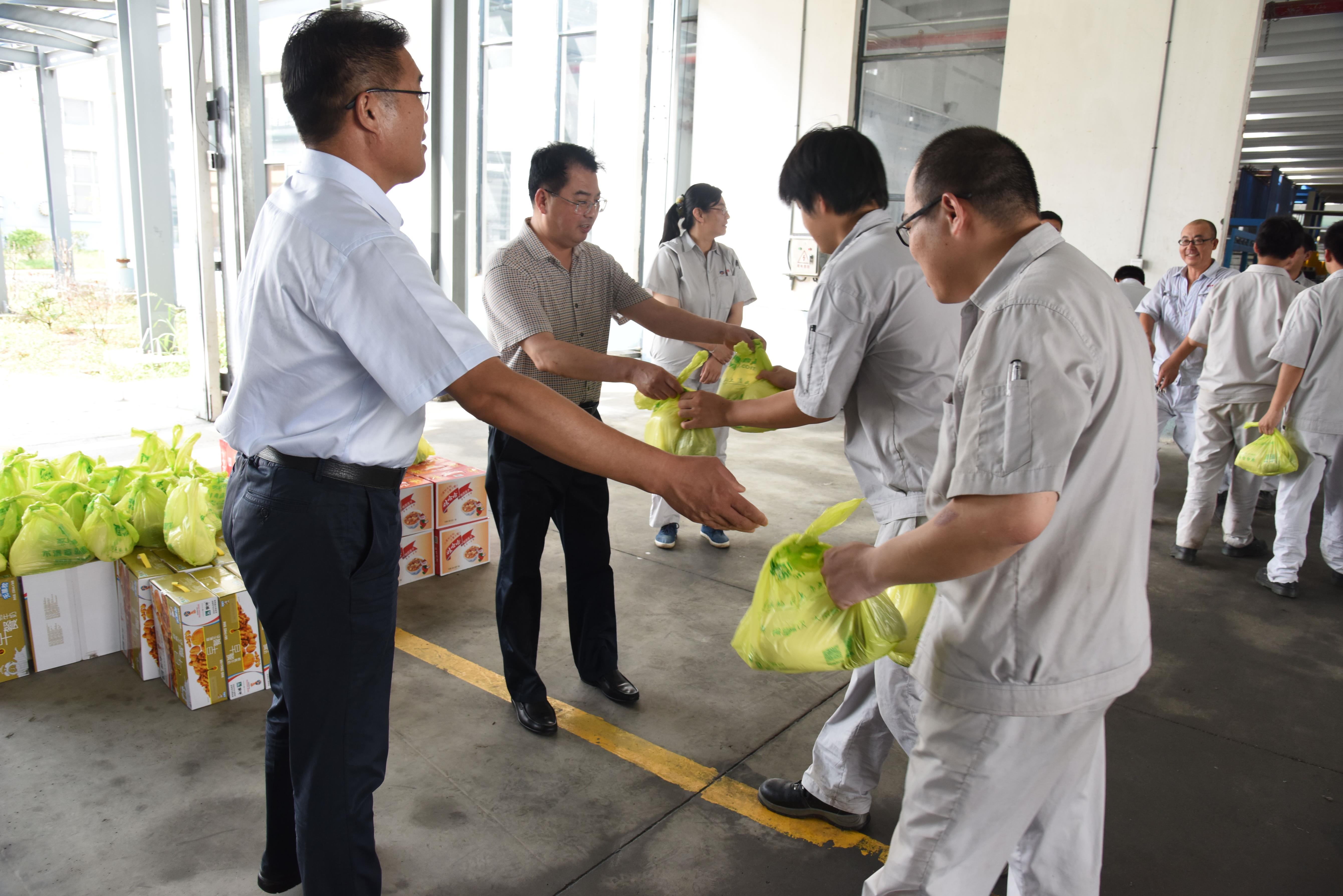 7月19日下午,B体育(中国)公司党委副书记戴鸿鸣、工会主席刘承志一行不顾酷暑高温,深入到神特公司生产一线,为职工送上了牛奶、绿豆等防暑降温物品。戴鸿鸣书记详细询问了生产经营管理及职工的生产、生活等情况;同时督促神特公司要进一步落实防暑降温政策,切实维护职工的健康权益。