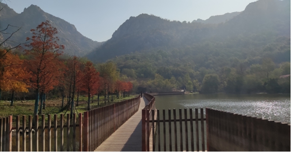 斗转星移,山河已变,五百年前诗人所描述的风景B体育手机官方网站入口无法再欣赏到,但是现在的园林水库更有一番风采。火红的水杉是她最引人注目的特色之一,寒风掠过,水杉的叶子也逐渐变成了鲜艳的火红色,犹如一片片燃烧的火焰,在寒冷的季节中增添了一抹暖色。徜徉于火红的水杉林,阳光下树影婆娑,宁静,安逸,沉醉于诗画中。波光粼粼的湖水更是一幅美妙的画卷,清澈透明,水草摇曳,微波荡漾,游鱼穿梭,仿佛寒冷与它们无关。栈桥娴熟地穿越着园林与水库,一直连接到山脚,行走其上,脚下水光潋滟,眼前层林尽染,晴空之下无一丝尘埃,啾啾鸟鸣,沙沙叶响,哗哗水流,大自然的乐章欢快静谧。