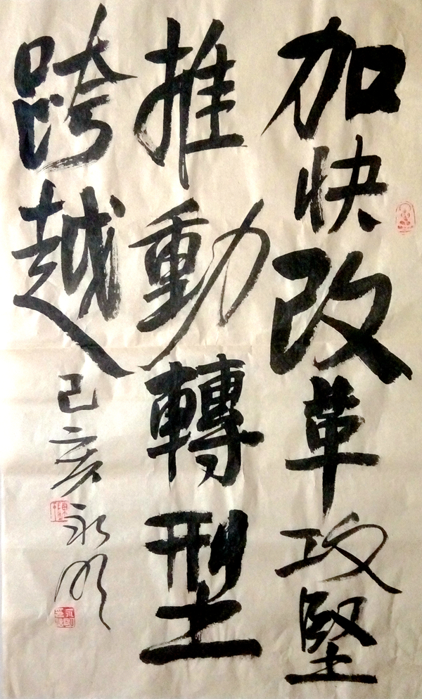 职工陈永明书法作品《加快改革攻坚,推动转型跨越》