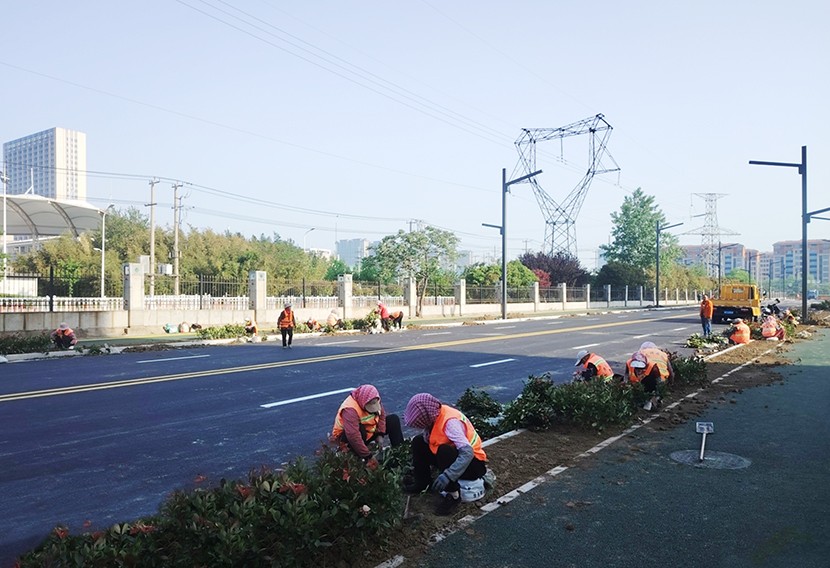 配合绿化分公司,对辖区新栽苗木进行浇水,有效保障苗木生长;增加节日期间清扫保洁力度,通过增加人工保洁作业频次,采用人机配合的高效作业模式等方式,最大限度地缩短污染物的停留时间,提高辖区道路清洁度;开发区辖区火车东站、花果山大道、东方大道、黄海大道、242省道等重点路段,随处可见身穿橙色工作服,手持簸箕、扫帚的环卫工人们,穿梭在热闹的街道边,用辛勤劳动,为城市留下一片干净整洁。