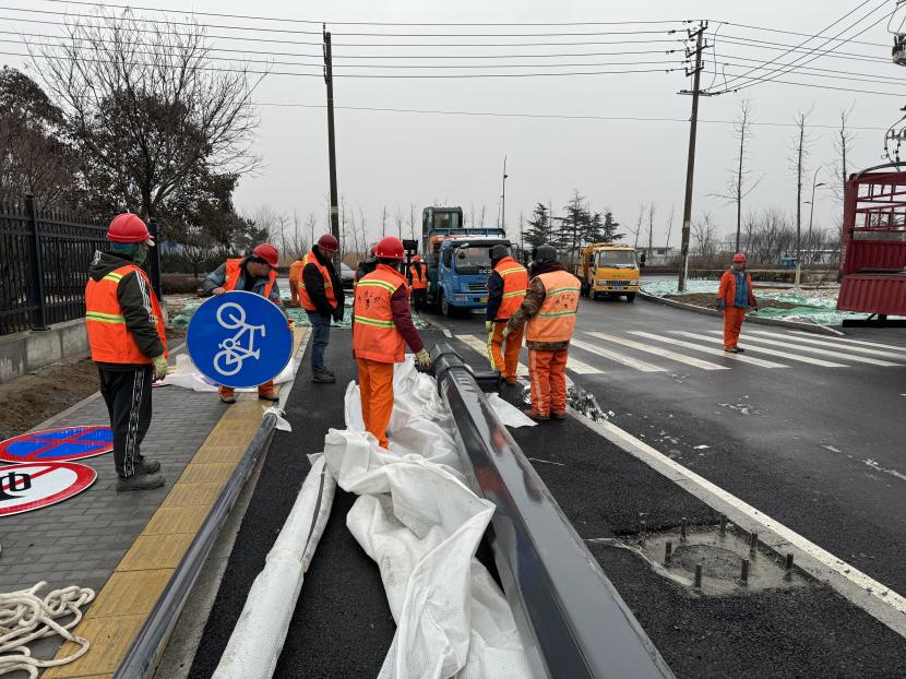 立足优质服务,确保维护管养及时高效。盛达市政分公司根据公司上级交办的重点工作,以及一季度观摩会活动线路保障等工作,积极完善辖区主次干道、公园、广场的市政设施,认真履职尽责,保障市政设施完善,做好下水管网运转通畅,巡查人员冒雨坚持道路巡查,对辖区下水管网进行摸底排查,及时清理疏通堵点,对积水严重路段设立警示标志,并利用抽水泵等重型设备疏导积水,确保辖区不出现大面积积水,保障了辖区人民群众的出行安全,一季度顺利完成辖区井篦、井盖更换安装合计约200套;另外,友谊路交黄海大道、兴业路交黄海大道、平山路交黄海大道雨水管网改造工程正在有序开展中。