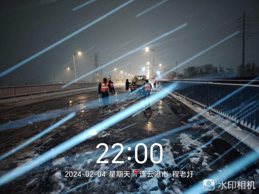自2月2日以来,裕升养护分公司接到扫雪除冰紧急通知后积极响应,迅速调配人员和物资,等待暴雪降临。在负责人霍正钢的带领下,公司第一时间成立应急抢险队,这是一支由12名队员,平均年龄在57岁所组成的队伍,更是一支“特别能吃苦、特别能奉献、特别能担当”的队伍。雪花于晚次日11点飘然而至,霍正钢密切关注雪量以及积雪状况,并做好指挥部署,同时通知各队员立即开展道路扫雪除冰工作。
