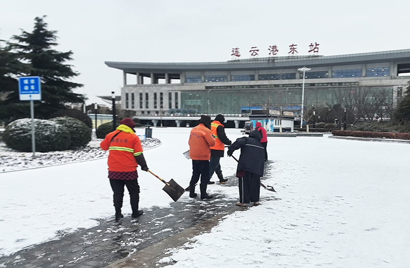 此次扫雪除冰行动,采用人机结合方式,调派铲雪车、装载机等机械设备,对东方大道、黄海大道、花果山大道、242省道等主要干道人行便道、交叉路口,新海连大厦、火车站东站等重要地段的路面冰雪进行突击清理;对各条干道的桥面及马山立交桥、新光路下穿立交等坡度路面铺洒氯化钙除雪剂融化冰雪。