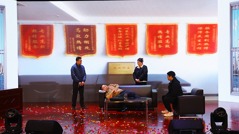 演出在舞蹈《祖国你好》中拉开序幕,随后,一个个欢快、喜庆、祥和的文艺作品相继上演。这其中,既有充分展现台北发展力量的情景剧《B体育手机官方网站入口是台北力量》《南泥湾畅想》,也有大气磅礴的男女对唱《不忘初心》和小合唱《众人划桨开大船》,有草原气息的笛子独奏《牧民新歌》,讽刺当下“躺平式”干部的廉洁作风小品《坑》,展现公司活力的男团《舞蹈:串烧》《山丹丹花开红艳艳》,奇特、神秘的魔术表演,一腔情怀的京剧《沙家浜-唱段军民鱼水情》……最后,在机关全体人员带来舞蹈《相亲相爱的一家人》中落幕,高潮迭起、精彩不断,得到广泛好评。
