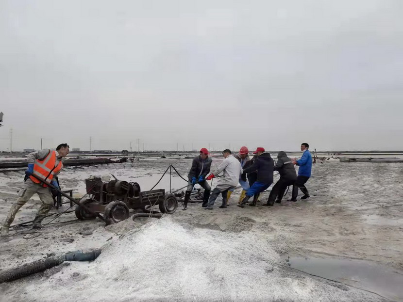 在海州湾大浦班组367亩的矿盐生产滩地上,远远的看去,只有三个人在滩地上忙碌,分别是班长孙和华和两名盐工。在十月份的时候,原大浦班组班长夏军带领第一批盐工前往海福特,孙和华因为身体原因选择了留下,此时,生产班组人数减半,只剩下三人。新产业要开发,矿盐复产也要攻坚,当公司征求部分职工意见,谁愿意来做大浦班组的班长,维持矿盐正常生产。大家心里都明白,这不是一份荣誉,而是一份责任,是千斤重担,一片生产滩地只有三人,这是一个烫手山芋的活。这时,孙和华站了出来,他说:“我是一名老党员了,党员就是要平时看出来、困难站出来、危急豁出来,为其他同志树立党员先锋模范作用,这份担子,理应我来挑!”