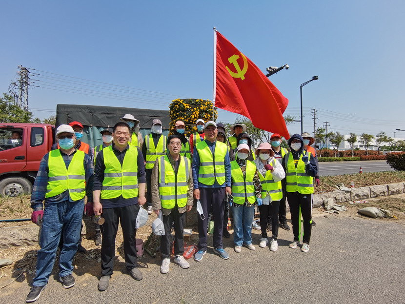 临达、美多利、资源分公司等党支部组织联合突击小队,从4月30日起主攻黄海大道绿化责任区,时至中午“不下火线”,党员职工就着矿泉水,啃着自带的煎饼,节约时间抢工期。