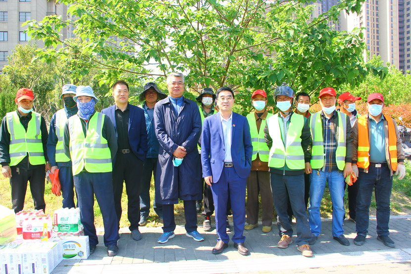 公司领导一行首先来到东方大道绿化工程现场,看望慰问海州湾公司志愿服务队广大职工。五一期间,翔立分公司承接一单绿化工程,由于时间紧任务重,全公司各单位、机关同志分别组成8支志愿服务队,大家放弃五一假期,全力支援翔立分公司。董事长王德志说,现在正值“五一”劳动节,大家为了台北的明天,为了自己的梦想放弃五一假期,让人十分感动,你们仍然坚守在岗位上,大家辛苦啦!”