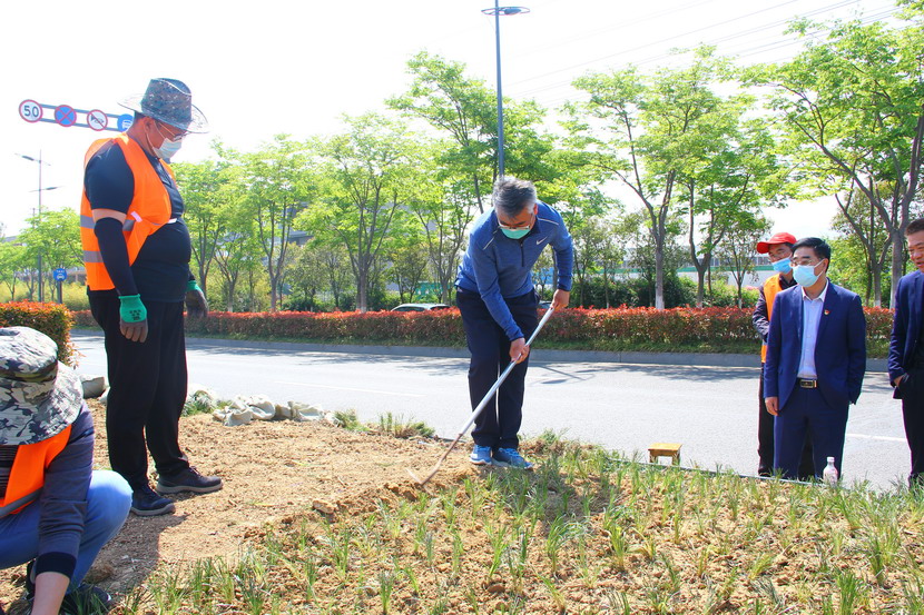 第二站来到黄海大道美多利公司支援片区。当看到这一群年轻人“艰难”地工作,公司领导刘军进行了指导:栽种要深,沟子要犁的深点.....随后董事长王德志现场示范,并且强调:苦干是精神,巧干是创新,巧干更能出活,大家放弃了休息,战斗在岗位,你们就是最美的劳动者,向你们致敬,希望大家弘扬劳模精神、劳动精神、工匠精神,继续顽强拼搏、实干苦干,一起努力继续建设美丽新台北,当好新时代的奋斗者、追梦人。