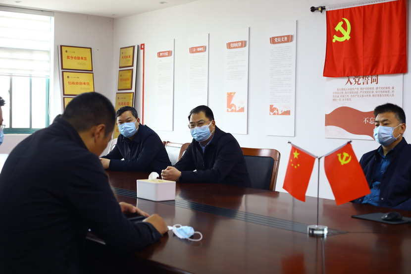 随后,戴书记一行在会议室听取投资公司一季度党建工作汇报,对投资公司工作给予肯定,投资公司领导班子面对突如其来的疫情时,做到了应变有力、保障有力、组织有力。在听取近期生产经营、党的建设等工作汇报后,戴书记提出四点指导意见:一是不折不扣落实上级指示精神。二是毫不动摇抓好疫情防控和复工复产。三是一着不让推进党建与工会工作。四是深入细致安全稳定环保工作。