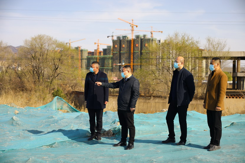 杨龙董事长一行首先检查货场道路和地面硬化情况,然后对未用地块裸土苫盖情况进行现场督察。