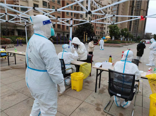 3月15日,公司紧急发通知,需要一名志愿者进驻同科志愿服务。与以往志愿服务性质不同的是,这次要24小时驻扎在同科,晚上也只能睡临时搭建的帐篷。刘林,作为公司年龄最小的员工,却在第一时间自告奋勇的报名。志愿服务的第一天,刘林先学习穿脱防护服、鞋套,然后协助工作人员采集信息、检查健康码、维持现场秩序、解答居民的各种问题。这样的工作,从早晨一直持续到晚上。简单吃完晚饭,紧接着是补录绿码人员。等所有工作结束,再进行周围环境的全面消杀工作。防护服一穿就是一整天,每每脱下时,已是皮肤发皱、衣服湿透,面屏里泛满水珠……已经连续工作2天的刘林说,“累,但B体育手机官方网站入口必胜,坚持就是胜利!”