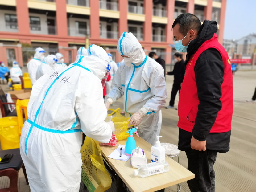 夜里9点40分,昌圩临时党支部抗疫工作群里信息不断:“同志们,刚接社区紧急通知,明天要进行第五轮核酸检测,还没有睡的同志们请到社区紧急集合,又增加两个检测点,抓紧去建点摆台。” “霍正钢收到、苏玲收到、秦黎明收到、朱文健收到、邱荣滨收到、于洪亮收到……”,“好,晚上温度比较低,请大家穿暖和一点,10点社区准时集合。”昌圩临时党支部书记李明发完最后一条信息,穿好马甲,戴上口罩,出发下楼。