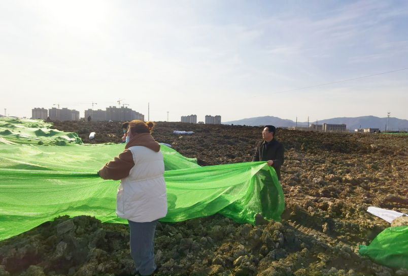 阳春二月,寒风凛冽,为了进一步提升环境整治水平,抑制裸露地面尘土,近日,投资公司党委迅速组织广大党员职工放下手中工作,全面投入到临达330亩货场的绿网覆盖行动中。