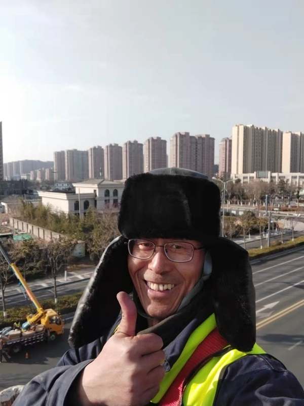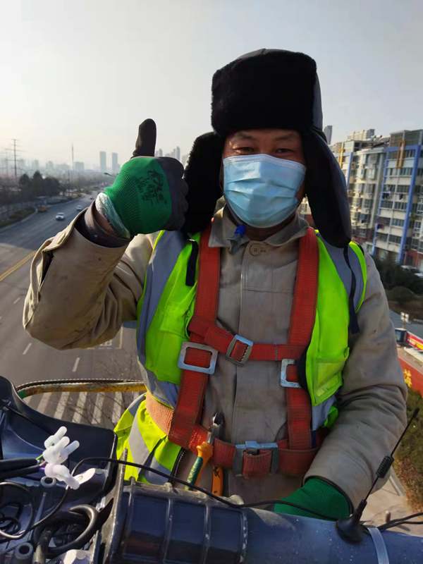 该项城市照明提升工程工程量大(约6500套路灯),工期紧。为了赶时间进度,翔立“铁军”们由12月27开始施工,日以继夜、马不停蹄的连续奋战在工程一线,没有一个人掉队,没人喊苦叫累,个个都像铆足了劲的“小牯牛”。肩带《安全员》红袖章的工程负责人乔以成骑着电瓶车不时地在海宁大道上来回穿梭着,“王师傅,高空作业车四条支撑臂必须支撑平稳牢固后再提升哦”,“段青春,把前方施工的警示牌摆在车辆后面,还有道路安全锥桶一定要将作业区域围起来,与后面来车方向保持安全距离。”在市区人流密集的道路上同时有5台登高作业车分区域高空作业的情况下,他最放心不下,毕竟是高空作业!为了防止高空坠落,登高施工操作人员全部按要求规范佩戴安全带、系好安全绳、绝缘鞋、防寒安全帽、警示马甲一应俱全,武装整齐。为防高空落物,作业车吊篮内使用的工具全部系上“失手绳”,安全施工是必要的前提,有措施,有办法,毕竟千条万条,安全才是第一条!