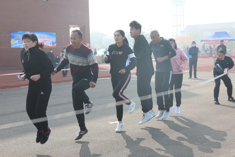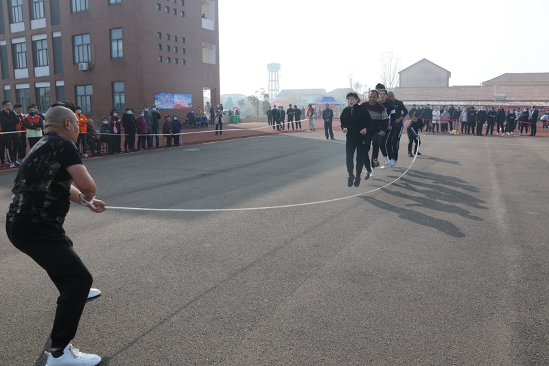跳绳比赛中,两位摇绳队员不断提醒鼓励,队员们则咬牙坚持,相互加油。大家排开一字长阵一个接着一个跃过长绳,步伐轻盈。每一个参赛选手都竭尽所能,以最快的速度跃过长绳,用一次次律动的跳跃动作,挑战着自己的力量和耐力。最终在大家的齐心协力下获得第二名的好成绩。
