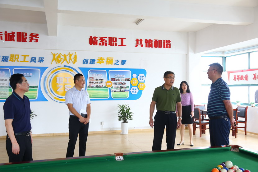 9月2日B体育(中国)公司工会来台北公司开展工会工作专题调研。B体育(中国)领导刘承志带队,调研组一行首先来到临达公司,参观职工建家工作开展情况。刘主席对职工文体活动、文体设施、困难帮扶等一一询问,并对今后发展作出指导。