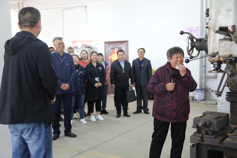 在曾经使用过的摇臂转床前,陈女士看着饱经风霜的“老伙计”,眼眶微红,眼角含泪,不停低囔着“怎么这么旧了,我之前天天都要擦的···”情绪是人类最美的意境,虽然在场的青年同志可能因为阅历不足无法共鸣当年的奋斗历程,但是老人对公司、对伙伴,对曾经奋斗过的地方的那种真情流露,让所有在场同志有了共情。