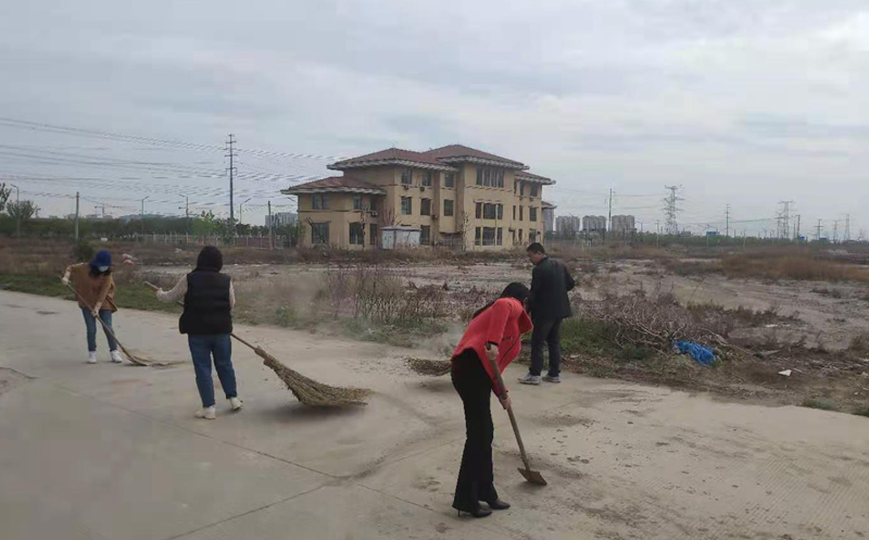 美多利公司党支部对园区裸露土地铺设防尘网2万多平方,有效解决扬尘问题,对三层楼体上的松散瓷砖进行铲除,有效解决安全隐患问题,为入驻企业配备禁烟标识、毒饵站等物品,确保企业人员安全生产,健康生活