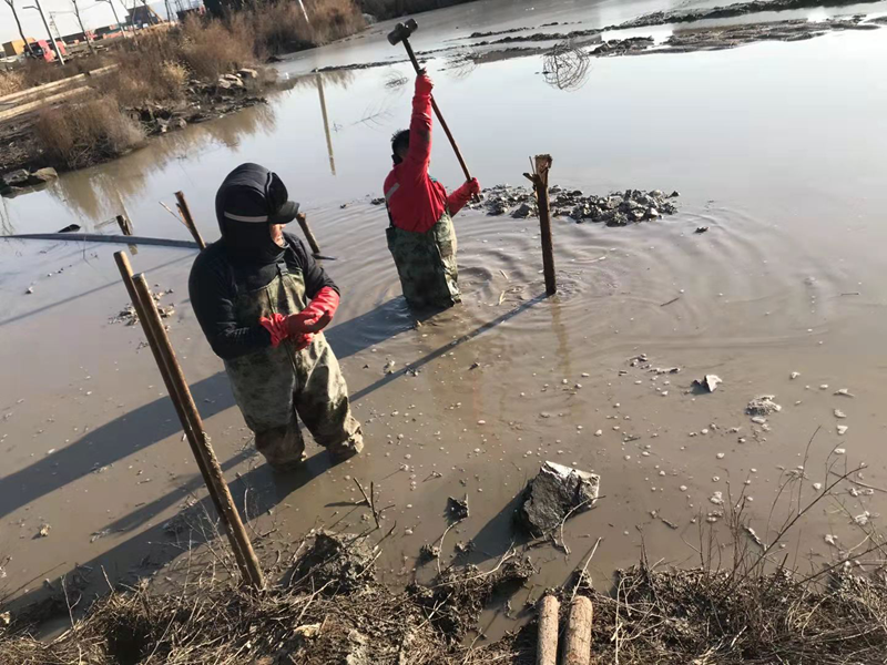管道巡查发现通往碱厂的钙液输送管道因天气影响爆裂损坏在送水道泥水中,抢修难度陡然增大。在困难前,B体育手机官方网站入口干事豪情直面挑战、创业激情燃烧严寒,穿上臃肿的防水皮衩深入到齐腰深的冰水中,卷起袖子双手在水下摸索着对接管道,拧紧哈弗节上的每一根螺丝,接下来的打桩捆绑固定一切皆是那么的娴熟。什么寒风侵肌、冰澈透骨全然阻挡不住B体育手机官方网站入口“铁军”干事创业的激情,铿锵有力的大锤不断打下新一年的希望。