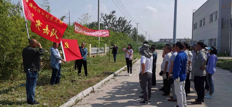 做一次突击劳动,争建新功。近期天气良好,雨水充足,海州湾工业园草木疯长。为营造一个良好的招租环境,全体党员齐心协力,冲锋在前当表率,充分发挥“迎难而上、勇于承担”的党员突击队精神,针对厂房周边、园区主干道附近区域进行集中除草,经过两个小时的战斗,园区环境面貌焕然一新,为公司下一步的招商奠定了坚实基础。