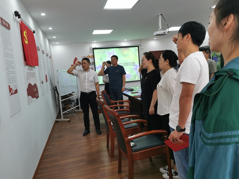 一次宣誓。在鲜红的党旗下,支部书记带领全体党员重温入党誓词,铭记一名党员的使命责任,把共产党员的第一身份挺在前面,提高政治站位,坚定理想信念,切实发挥党员的模范带头作用。
