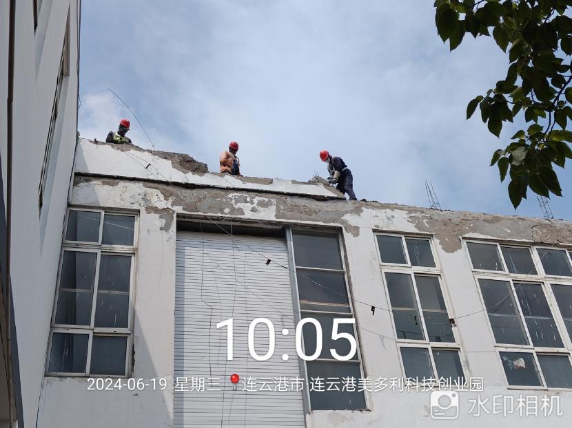 在炎炎夏日的高温炙烤下,翔立分公司市政班组的工人们仍然坚守在美多利厂房的楼顶,进行着一项重要的安全隐患整治工作——外凸女儿墙的拆除。在这场与高温和危险的较量中,他们不仅展现了顽强拼搏的精神,更用实际行动诠释了安全生产的重要性。