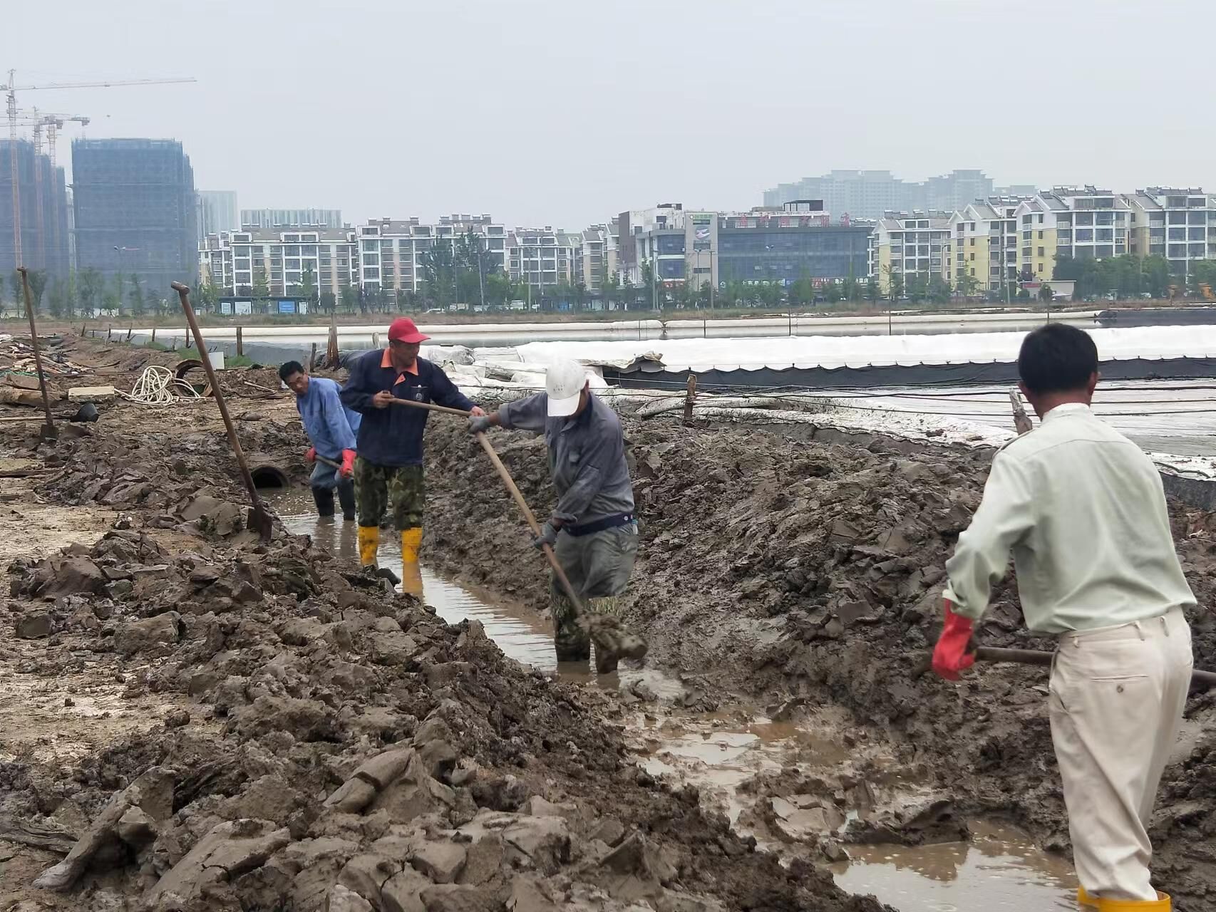 根据部署安排,公司建立防汛队伍,备足铁锨、编织袋、塑料绳、水泵等防汛物资和机械。汛期来临前组织各班组自查安全生产情况,做好应急演练,进一步完善防汛抗灾工程,疏通排淡沟道,加强塑池管理、防风工作,加高口门备熟泥,塑池小包围工程,雨季遇不稳定天时,提前苫盖一部分塑池,凡是中雨以上降水,及时按排人员对结晶池进行检查,及时排淡,做到雨前、雨中、雨后勤检查,确保确保钙液、矿盐劳动成果安度雨季。