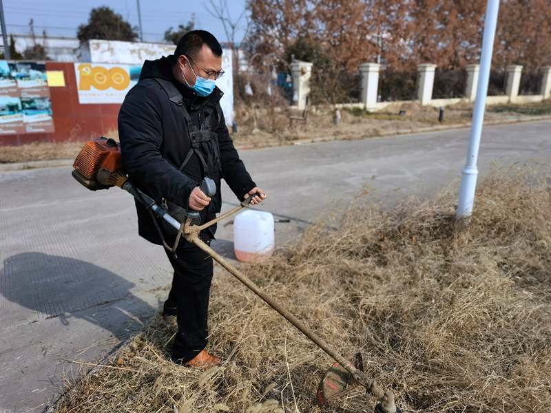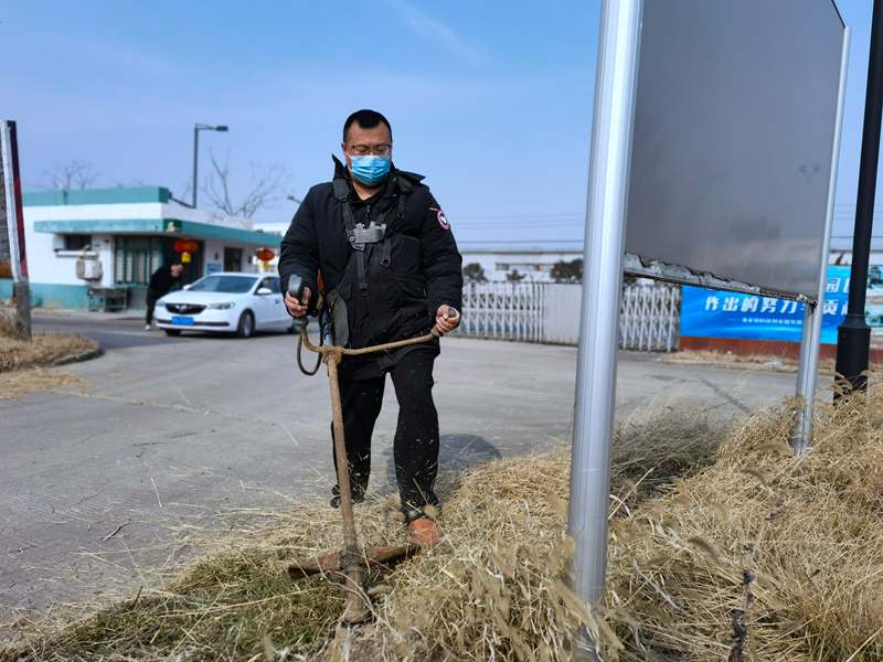 经验老道的“除草匠人”朱春华一马当先,一人成军,小小杂草在挥舞的打草机下“灰飞烟灭”