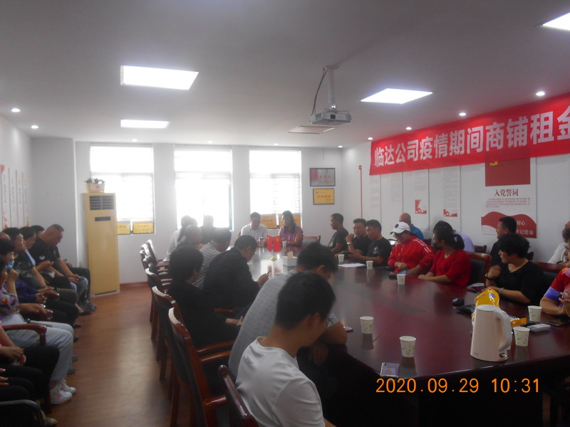 临达公司党支部坚决和党中央保持一致,坚决拥护党中央的决定,认真学习了省、市以及B体育(中国)公司等减免疫情期间房租的相关文件精神,仔细研究、反复讨论,经上报台北投资公司、B体育(中国)公司两级党委批准,9月29日下午,减免光伸建材市场、德兰建材市场、金三角市场、原公司院内仓库、院外大棚、猴嘴山洞共48家商户3个月租金,计52万余元,减免金额达全年租金收入四分之一。