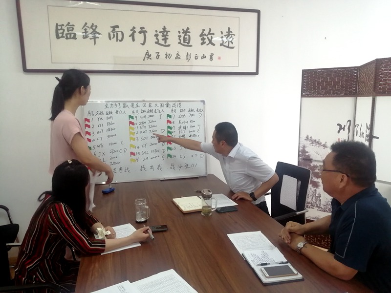 挂图作战,标旗推进。挂图作战挂的是信心和决心,战的是责任和担当。将已经完成、部分完成、急需启动的目标以红旗、黄旗、绿旗分别标识,每个任务以字母、数字代码表示,参战队员手持“密码本”,破译增收难题。
