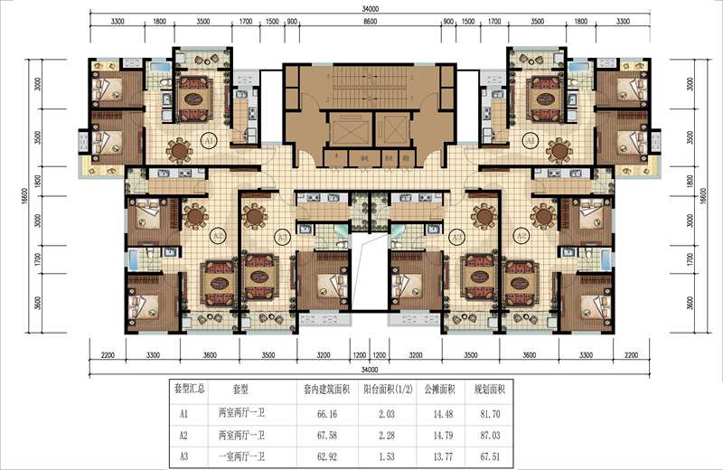 项目规划有五种户型(A1、A2、A3、B1、B2),房源共计548套。其中:A1、A2、A3户型分布在A1#、A6#楼,共240套;B1、B2户型分布在A2#、A3#、A4#、A5#楼,共308套。